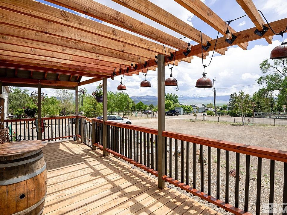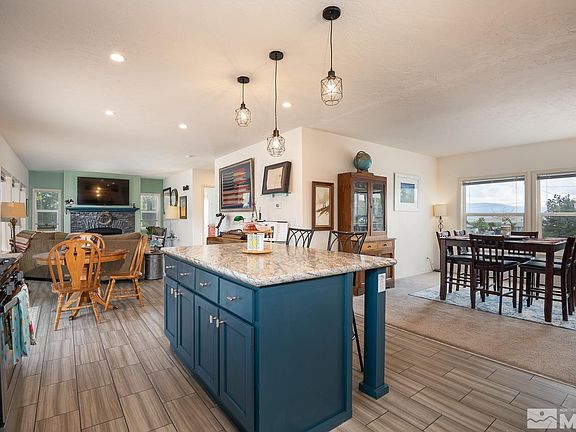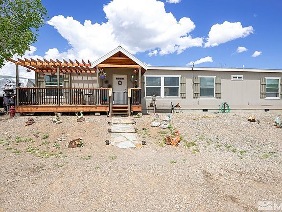 Embrace rural life with modern comforts at this peaceful Topaz Ranch Estates property! Proudly positioned on a sprawling 2.35-acre lot, this charming manufactured home offers a 3-bed, 2-bath layout with nearly 1600 sq ft of quiet, comfortable living space. Step inside and discover the stylishly updated kitchen featuring a gas cooktop, recessed lighting, a pantry, vinyl tile flooring, and a large island with additional seating capacity., The kitchen also offers a broad sliding glass door that opens to the rear of the property, filling the space with natural light. The adjoining family room boasts high ceilings, oversized windows, and a gas log fireplace with a stone surround, creating a cozy atmosphere. The master bedroom features high ceilings, a walk-in closet, and an ensuite bathroom complete with linen closet, a garden tub, and separate shower stall. The home includes a mud room/laundry room with convenient shelves for extra storage. Horse lovers will appreciate the equine-friendly amenities, including corrals and ample land for animals to roam freely. This tranquil estate enjoys a country setting with vast open space, few neighbors to ensure privacy, and breathtaking panoramic views of the desert valley and three stunning mountain ranges: the Eastern Sierras, Pine Nuts, and Sweet Water Range. Take in the beauty of the surrounding landscape from the newly installed front porch or the freshly stained rear deck with a pergola. Parking and storage are made easy with the detached 4-car garage, RV access/parking, and a single carport. Conveniently located just minutes from Hwy 395 access, this property offers easy commuting and access to nearby amenities. Additionally, it is only 6 miles from the shores of Topaz Lake, providing opportunities for recreational activities and lakeside relaxation. With its idyllic rural setting, modern updates, and stunning views, this property is truly a gem. Seize this opportunity to make it your own – schedule your showing today!
