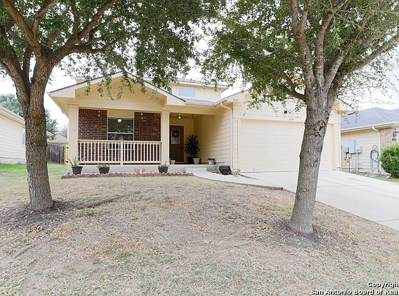 Great starter home in sought after Schertz! This home is well maintained with a great size yard, open floor plan, and downstairs owners retreat. Enjoy your morning coffee on a large covered front porch and BBQ on the back porch. This home is located close to JBSA and in award winning UCSC School District. Come check it out today!