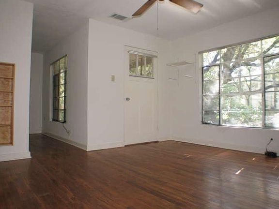 1948 Duplex- 2/1 downstairs unit, featuring original oak floors throughout. Tiled bath, checkerboard floors in kitchen, ceiling fans in living room and bedrooms. With many windows, this space receives great natural light. Ample outdoor space in the front and back, shaded by mature trees and greenery. Utilities are all tenant responsibility