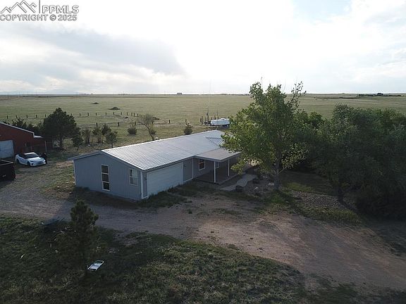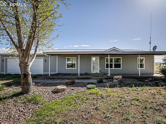Welcome Home to Your Ideal Ranch Retreat with Pikes Peak Views! This beautifully updated ranch-style home situated on 40 fully fenced and cross-fenced acres perfect for horse lovers! This move-in ready 3-bedroom, 2-bath home has been freshly painted inside and out, and features brand-new carpet throughout. Step onto the serene front porch, the ideal spot for morning coffee or peaceful afternoon relaxation. Inside, you're greeted by a bright and spacious family room filled with natural light. The large primary bedroom includes a well-appointed en-suite bathroom that conveniently connects to the laundry/mudroom. The kitchen offers stainless steel appliances, a gas stove, and an eat-in dining area. On the opposite side of the home, you'll find two additional bedrooms and a full bathroom, providing privacy and space for family or guests. 2-car attached garage with ample natural light and a rear exit door. Mature trees and wide-open views of majestic Pikes Peak! A 42x60 barn ready for your livestock or storage needs. 25x68 Quonset hut for equipment or workshop use! Whether you're looking for a peaceful rural lifestyle or a turnkey equestrian property, this one has it all. Don’t miss your chance—schedule your showing today!