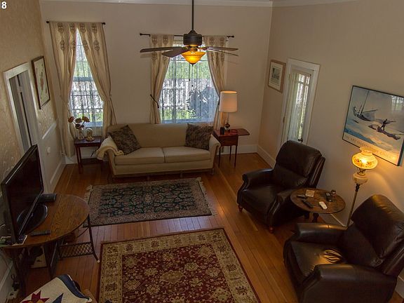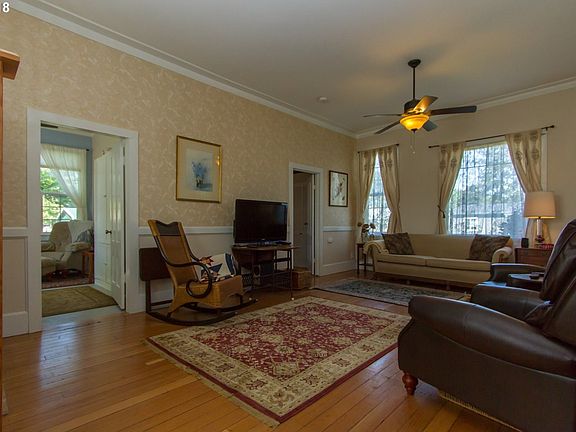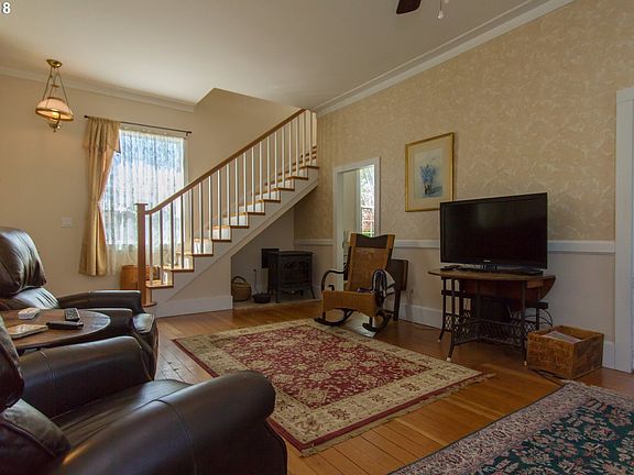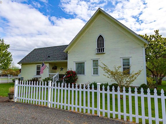 Beautiful! 2nd oldest home in Scio on a nice large corner lot w/a picket fence. Arrive into an enclosed entrance for shoe drop off before going into the main living areas. Orig. Doug Fir woodflrs in the living room. Galley kitch w/butcher block counter tops, white tile backsplash, & white cupboards for a nice crisp look. Formal dining room off the kitchen w/door to access lg back yard. 2nd floor dedicated to the MBR & MBA, nice lg roo