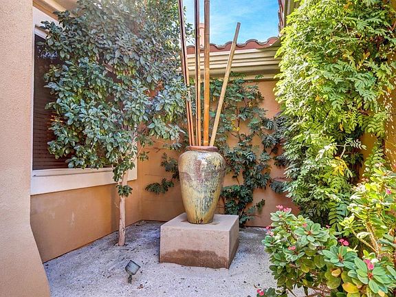 Your own Oasis in the Desert! This beautiful Extended Monoco invites you through the front courtyard past the Zen garden tucked to the right. Entering through the double doors you'll find a large spacious Living Room & Formal Dining area with 12' ceilings & large walls for your artwork. (10' ceilings elsewhere.) Looking through the wall of sliding glass doors, the 35' Heated Lap Pool beckons! Gorgeous neutral 24'' diagonally-laid tile throughout with recessed lighting, custom window coverings or blinds. Ceiling fans in the Greatroom and Bedrooms. Master Bedroom sliding glass doors look out over pool area. Master Bath has dual sinks, a soaking tub and a shower. Closet has built-ins. Extended Guest Bedroom Suite with built-ins under window & French doors out to courtyard. Office can be a 3rd bedroom. Chef's Kitchen & Pantry with large center island, newer appliances & several Eating Areas. Laundry Room with utility sink. Lots of storage throughout. SCPD-IT'S NOT JUST A HOME, IT'S A LIFESTYLE! Stamped concrete on front & rear patios with epoxied 2+ golf cart garage and driveway. New Pool Pump Heater. Close to Main Clubhouse, Tennis & Pickleball Courts. Some furnishings available outside Escrow include Living Room, Formal Dining Room, dining table/chairs in Greatroom, Office. Leased Water Conditioning unit.