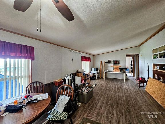 Country Living with Views!! Fenced in property with irrigated pasture for your animals, multiple chicken coops, dog run, and garden space. Couple good options for a shop, while the attached carport gives space to keep your cars covered. Relax in the enclosed sunroom and enjoy the slower pace of life while taking in the views. With over 2000 sqft you can entertain guests, host large dinners, and also cozy up in front of the pellet stove and watch a movie. The master suite is HUGE! Sitting or office area, walk in closet, and master bath with soaker tub. Update this home with your choice of colors and really bring it to life! Endless possibilities with this rare country location. Buyer to verify all information.