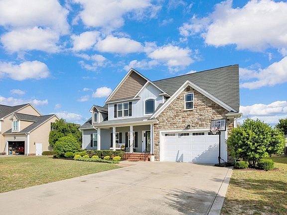 Enjoy a pleasant traffic-free commute into Fayetteville by Joining the beautiful community of Old Bluff @ McAllister Farm with this AMAZING 4 BR 3.5 BA home featuring 2 Master Suites and a BONUS Room! Grand foyer entry into the stately FORMAL dining room with custom moldings. The AMAZING wood floors WELCOME you into the FAMILY room with a beautiful hearth and gas logs fireplace. Custom MOLDINGS and ARCHWAY entries through the home. Tiled floors in all wet areas. CUSTOM cabinets, QUARTZ backsplash, STAINLESS appliances, and a LARGE pantry. Plenty of STORAGE! LARGE Master BR main floor, WIC, LUXURY ensuite bath w/ Tub and Shower. 2nd floor Large Master BR with an adjoining bath. 2 other sizable bedrooms. Fenced-in backyard with a covered porch for entertaining, and plenty of room to play. ENJOY the community's amenities, along with a walking trail, picnic, and playground area. It is conveniently located near Fayetteville, Fort Bragg, and I-95 for trips to Raleigh. With so much to offer, this is the perfect place to call home! Don't wait!