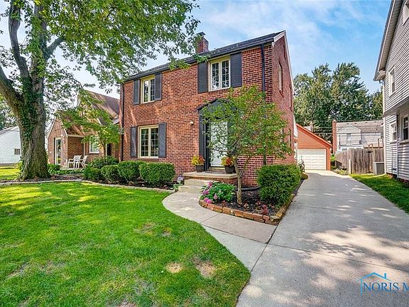 This one is a charmer All brick two story with gorgeous hardwood floors, updated windows, main floor half bath, and move in ready You will love the unique covered patio and the second floor balcony The detached garage is huge and has tons of storage in the attic Basement is partially finished with a cozy family room with epoxy floors and wood accent wall Additional concrete in back that makes it great for guest parking Built in firepit with benches that stay Hurry to see this one Immediate occupancy