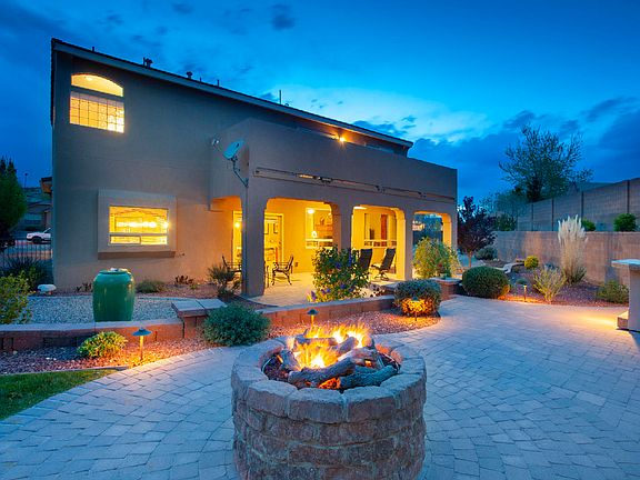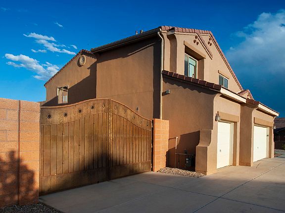Indoor & outdoor living at it's finest with this 5 bedroom masterpiece property built by DR Horton on 1/2 acre. Need place to park your RV? You have it! This home will allow you to park it just past the decorative iron gates next to home. 2 master suites with new 2nd master bathroom with walk in shower. New Lennox I-Comfort 98% efficientFurnace, 3 car garage, large walk out deck with views of the Sandia Mountains, Game room : Pre-wired for surround sound. Large Gourmet Kitchen with large Eat-in Dining area & granite island with seating for 6, GE profile series appliances, New 2 drawer Fisher & Paykel Dishwasher, Low profile vent hood,Large French Doors leading to covered patio. Beautifully landscaped with a large covered patio with outdoor kitchen, fire pit & extensive dramatic lighting.