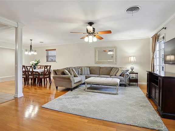 Sophisticated Charming home in a desirable location. 3 bedrooms/3 full baths plus a large bonus room with a gas fireplace. This room is a perfect office or playroom. From the relaxing front porch to the Large backyard, This has it all. The kitchen offers SS appliances, granite, an eat-in countertop area - open to the dining room & a nice size den. Lots of Natural lighting throughout. The side entry door under the covered carport leads to the kitchen area. Wood flooring and tile throughout. New roof, New water heater, New gutters, and freshly painted outside. Low flood only $792.00 full coverage.