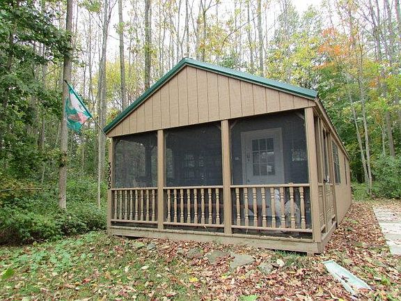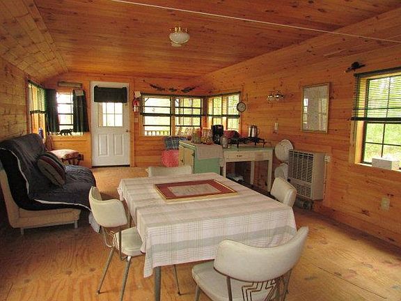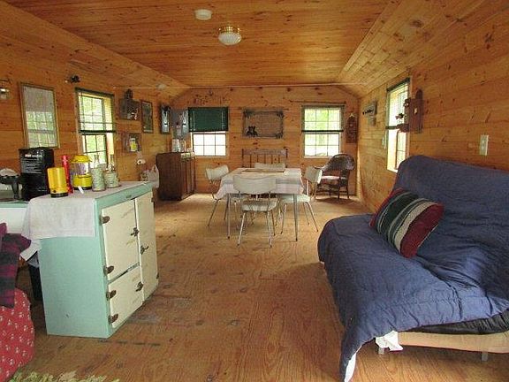 Looking for a getaway retreat? Take a look at this cozy Wood-Tex cottage on 3.63 wooded acres with a view near Cranberry Pond. The insulated seasonal cabin is set up with all the essentials. It has a propane direct vent wall furnace, 2 burner cooktop, and propane lighting. There is also a propane fueled generator in a detached shed for electricity. The 14 by 36 ft. cabin is spacious and open with plywood floors and pine paneled walls and ceiling. There is no septic system but there is an old well with a hand pump on the property. Surrounded by woods in a rural setting.