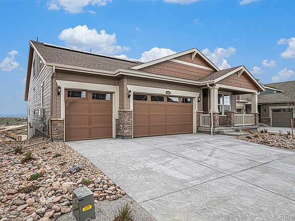 **Contact Lennar today about Special Financing for this home - including below market rates** Terms and Conditions Apply** Welcome home to the Davis floorplan built by Lennar with a walkout basement! The gourmet kitchen is a chefs' dream which hosts a large oversized eat in kitchen island and overlooks the great room and nook. The chef's kitchen features double ovens, s/s appliances, quartz countertops and upgraded cabinets! Additionally the main level is saturated with EVP flooring and natural light. Step into your owners' suite and enjoy the en-suite spa style bathroom! There is an additional guest bedroom, 3/4 guest bathroom, private study and mud room. Upstairs has a secondary suite great for guests, a loft and a full bathroom! The walk-out basement is unfinished waiting for your personalization. Store all of your toys in the 3-Car garage! Macanta is an amenity rich community with a clubhouse, pool, miles of walking trails and some of the best topography Colorado has to offer! The location puts homeowners close to Castlewood Canyon State Park for great outdoor recreation, while Denver is a short drive away for a plethora of shopping, restaurants and entertainment options. Estimated move in May 2024.
