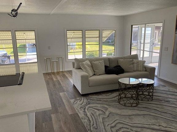 Discover Resort-Style Living in beautiful Sarasota, Florida! This exquisitely renovated home is move-in Ready and awaits your arrival. FEATURING a NEW membrane roof! Step into this modern 2-bedroom, 2 full-bath home that has been remodeled and is ready for you! A Brand New kitchen and countertops with the stove centered in the middle of a gorgeous island with plenty of space to have a few chairs and entertain awaits your culinary skills. Have a glass of wine and socialize with friends while preparing delicious masterpieces. The beautiful light above the kitchen island is a showstopper and makes it bright and cheery. An open-air concept for both the dining area and living room brings grandeur to this lovely sanctuary. New ceiling fans can be found throughout the home to keep you cool and comfortable year-round, and everything has been freshly painted! New luxury vinyl plank flooring runs seamlessly throughout for easy maintenance and a modern appeal. The master bedroom has a beautiful and fully renovated bathroom that words just cannot describe, along with ample closet space. The guest bedroom is just the right size for a queen bed and restful comfort. A screened-in lanai is perfect for enjoying the desirable Florida climate. Sip morning coffee or evening cocktails and relax with friends. The carport is also spacious with a large, attached shed for plenty of extra storage. The lot rent is $1100 per month, including trash pick up, lawn mowing, edging, and blowing. A small price to pay to live 3 miles from downtown Sarasota nightlife, restaurants, theaters, and the Sarasota marina. The Winds of St. Armands is conveniently located about 3 miles north of downtown Sarasota shopping, dining, and cultural activities. It is also located about 3 miles south of the UTC mall area. White, sandy Gulf beaches and crystal clear waters are minutes away. The Winds is pet-friendly, permitting 2 pets up to 25 lbs. CALL, TEXT, OR EMAIL TODAY TO SCHEDULE A SHOWING OR TO MAKE AN OFFER! WE LOOK FORWARD TO SPEAKING WITH YOU OUT OF TOWN?!?!? NO WORRIES, WE ARE ABLE TO DO PAPERWORK REMOTELY AS WELL. FEEL FREE TO CALL, TEXT, OR EMAIL ME. All listing information is deemed reliable but not guaranteed and should be independently verified through personal inspection by appropriate professionals. Our company does not and cannot guarantee or warrant the accuracy of this information or the condition of this property. Measurements are approximate. The buyer assumes full responsibility for obtaining all current rates of lot rent, fees, and pass-on costs. Additionally, the buyer is responsible for obtaining all rules, regulations, pet policies, etc., associated with the community, park, or home from the community/park manager. Our company is not responsible for quoting said fees or policies. Financing is available through 3rd party lenders. The sales price does not include tax, dealer fees, or administrative fees. Please contact the sales agent for additional information.