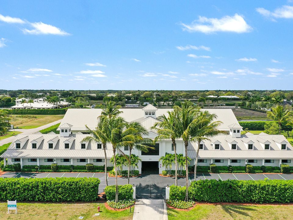 20-stall barn is only a short hack to WEF and only minutes to GDF, this spectacular barn and covered riding arena is located within the desirable and secure Grand Prix Village South. The expandable 80' x 210' arena makes year-round training a reality. The barn includes a fabulous owner's lounge on the second floor with a full kitchen complete with wine fridge and Chef's gas Thermador range and Monogram appliances, large island, as well as a full bath, elevator,impact glass, and a generator. The spacious screened-in lanai makes this the perfect barn for entertaining and enjoying the equestrian lifestyle. In addition, it has tile, marble and hardwood flooring. Downstairs includes a spacious lounge, 2 air-conditioned tack rooms, feed room, 2 half baths, office, fire