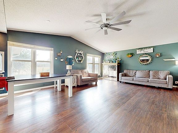 Welcome to this charming ranch nestled in a tranquil, family-friendly neighborhood situated on a serene cul-de-sac. The main level welcomes you with laminate floors that lead into the spacious living area, with a vaulted ceiling and a cozy fireplace, creating an inviting ambiance. With three bedrooms and two full baths on the main level, there's ample space for the whole family. The well-appointed kitchen features laminate floors, complemented by laminate countertops, a tiled backsplash, included stainless steel appliances, and a convenient pantry. Adjacent to the kitchen, a lovely all-season sunroom offers a panoramic view of the backyard. The primary bedroom on the main level features carpet floors, and a convenient walk-in closet. The attached primary bathroom has laminate floors, solid surface counters, and tub/shower combo. The partially finished lower level provides versatility, offering a generously-sized open main room, a storage area, and a laundry room. Step outside to discover a treated wood deck and porch that overlooks the yard, complete with a chain-link fence for added privacy, mature trees and empty lot behind that add to the scenic beauty. The exterior also includes a storage shed. With its proximity to a variety of amenities, including a short 3-5 minute drive to major pharmacies and a 1-3 minute drive to the post office, this home truly combines comfort and convenience in an ideal location.