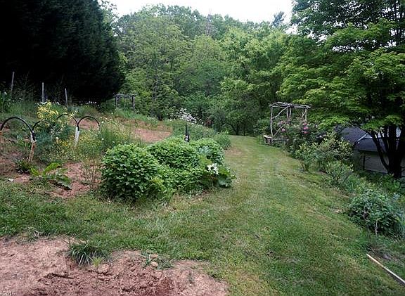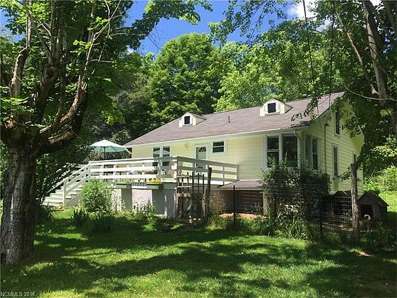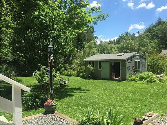 Sunny and cozy 1.5 story renovated home on almost one beautifully cultivated acre. Spring fed pond, chicken coop, and 6 different varieties of berries. Orchard w/cherry, peach, pear and apple trees. (Non-certified) organic gardens are fully planted with vegetables and culinary/medicinal herbs. Currently used as a cash-generating business. Convenient to Asheville and downtown Marshall. Two outbuildings. One is currently being used as a pottery studio, 12x20, fully insulated/220 power.