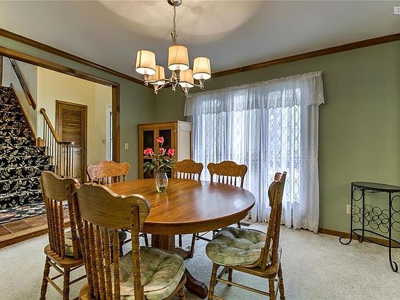 Picturesque Brooktree two story has curb appeal and a backyard view of nature. Elegant front entry, formal dining room w/ mirrored wall, lots of cabinets in the kitchen, eat-in area overlooks a parklike backyard. Extra large deck makes room to entertain. Great room has beamed ceiling & fireplace w/ gas logs. Laundry room is off the half bath on main level. Lower level walks out. Huge recreation room is versatile, stubbed for bar or kitchenette, has bath with shower. Workshop tucked under suspended garage will