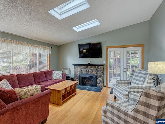 A perfect place to call home! As you step into this Corvallis charmer, you'll be greeted by a warm & inviting open floorplan and beautiful hardwood floors. Skylights & updated fixtures bring in plenty of light, while updated bathrooms offer a modern & luxurious feel. Recent updates include stainless steel kitchen appliances, gas fireplace insert, exterior paint, revamped crawlspace, & newer roof. Mature & attractive landscaping, complete w 4-zone drip system. Convenient location near Woodland Meadow Park.