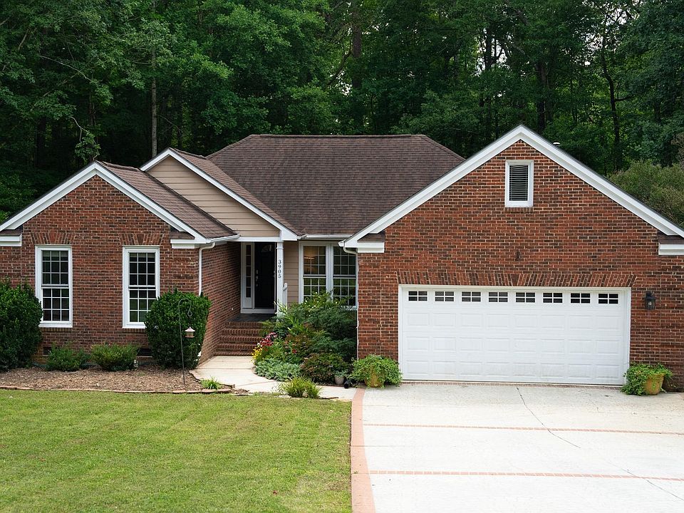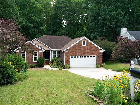 A Rare find! Beautifully updated one-story home in desirable southern Cary (Apex address but in Cary Town Limits). The low-maintenance 3-side brick exterior provides a classic appearance. A large rear deck & patio overlook the wooded serenity of HOA Open Space. The Family room and Primary bedroom feature cathedral ceilings, creating an open & spacious atmosphere. Hardwood and tile floors enhance the aesthetic appeal and durability of the home. Some of the recent updates include: new HVAC system in 2022, updated bathrooms, refreshed kitchen cabinets, new carpets, and fresh interior paint throughout. The living areas and kitchen feature smooth ceilings, giving a modern and clean look. New light fixtures have been installed throughout the home, enhancing both functionality and aesthetics. The rear exterior doors have been replaced, and the gas log fireplace wall has been updated, featuring a handmade cedar live edge mantel. The Holly Brook neighborhood offers a community pool, providing a refreshing space to relax and socialize. Once completed, easy access to NC540 will make commuting & traveling more convenient.