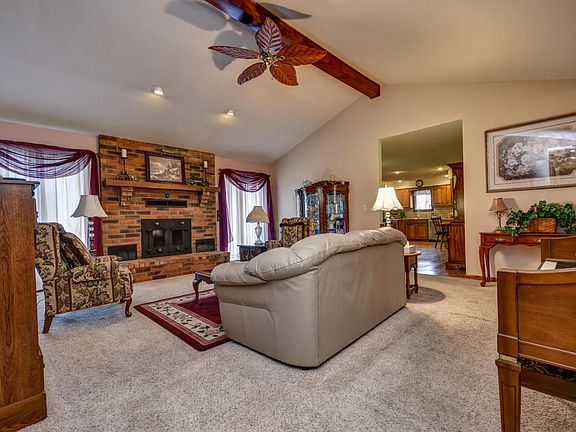 Dandy all brick ranch on a cul-de-sac complete with a sun room. Situated in Kickapoo Prairie, it's close to hospitals and shopping. The living room has a wood burning FP with an insert and carpet flooring. The updated kitchen has corian counters, stainless steel appliances, pantry and hardwood flooring. The three bedrooms include the master with large walk in closet and walk in shower in the bathroom. One of the bedrooms has a computer desk which could stay with the home. A nice size laundry room has a half bath and a closet. Enjoy the large sun room which has heat and a/c. Six panel doors are throughout. The two car garage is over-sized and has shelving which stays. In back is a deck, nice level fenced yard and storage shed.