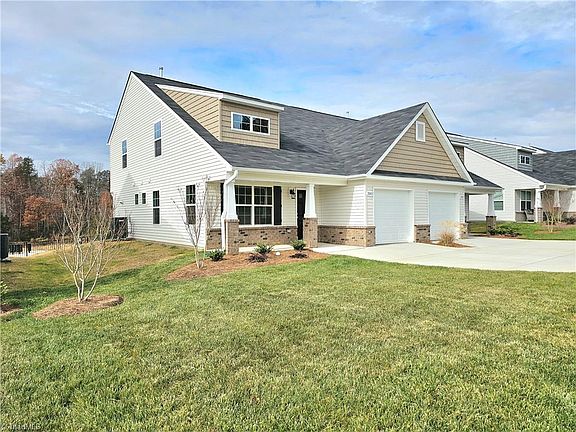 NEW NEIGHBORHOOD - Villas at Strawberry Creek by Windsor Homes! INDIANA floorplan (end unit) with Primary Bedroom on main, Luxury Vinyl Plank flooring and one car Garage. Kitchen has grey cabinets, ceramic tile backsplash, blanco matrix quartz countertops and vented gas range. Large upstairs with two Bedrooms, Loft and Flex space. Outdoor living area includes Porch at front and Patio with Storage Building at rear. Walking distance to Proehlific Park Sports Center, minutes from Battleground and New Garden shopping, parks and highway access. Lot 51 is under construction, East facing, estimated ready for close NOV '23. Call/text Kate for an appointment to visit the community. Photos and virtual tour are representative of floorplan, not decorator selections.