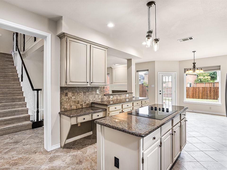 Enjoy all this updated Hunters Creek home, with its blend of comfort, functionality, and space, has to offer. The excellent floor plan flows from a dramatic entry and split formals to a comfortable family room, with wood burning fireplace; stylish island kitchen, with granite counters, upgraded cabinets and stainless steel appliances; and breakfast area overlooking the spacious backyard, with towering tree, two expansive patio areas, stained, steel-post fence and attractive storage shed. This 2-story, 5-bedroom floor plan offers space and versatility. The bedrooms, most sizable and with a vaulted ceiling, are split three ways, with the primary bedroom thoughtfully placed for added privacy, and a downstairs guest room (or office) with direct access to a remodeled bathroom, one of three full bathrooms. (One of the secondary bedrooms upstairs also has direct bathroom access.) The remodeled primary suite boasts wood floors, a sitting area, with beautiful bay windows providing a backyard view, and a spa-like bathroom, complete with split vanities, large shower, and custom-designed walk-in closet. Additional features and upgrades include: Renewal by Andersen® windows; ceiling fans in living areas and all bedrooms; separate utility room, with electric & gas dryer hookups and room for a freezer; 2-car garage, with electric garage door opener; 2025-installed roof shingles and gutters; 17-SEER HVAC systems; 50-gallon gas water heater; and sprinkler system. Additionally, both the exterior & interior were painted in 2025, and the foundation was reinforced in 2022. Adding to the overall appeal, Hunters Creek, located in Denton County, and with low, mandatory association fees, is an established, treed neighborhood, minutes from all three Lewisville ISD-zoned schools, several major thoroughfares, and a DART rail station, and close to Lake Lewisville & DFW airport. Buyer and buyer's agent to verify all information, including, but not limited to, room dimensions, features & schools.