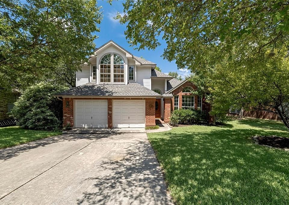 Charming two story open floorplan on greenbelt. Great views from master bedroom window seat, screened cedar deck, and elevated adn limestone patio. Upstairs game/media room. New roof. Access to 3 community pools, playgrounds, tennis courts and boat ramp.Restrictions: Yes Sprinkler Sys:Yes