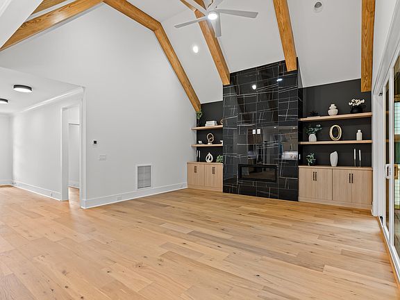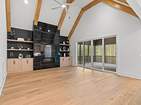 Elegance & Class await you at every turn. Just off the wide foyer a double glass door opens into the office with black arched custom built-ins featuring under mount lighting. The great room draws you in immediately with the high beamed ceilings & a dramatic black tiled fireplace to the ceiling surrounded by built-ins! That leads to the 8-foot sliders opening to the screened porch with beautiful tongue and grove stain cathedral ceilings overlooking the private backyard. Bright open kitchen with woodgrain and white cabinets, 6 burner gas stove with electric oven as well as a built in over & microwave and large walk-in custom pantry. The primary suite is on the main floor with dramatic beamed cathedral ceilings, and large windows overlooking backyard. Primary bath features an oversized soaking tub and large walk-in shower with gorgeous tile to the ceiling. The owners closet features custom shelving and a peninsula separating the two sides. The main level also hosts a guest suite with a full private en-suite bath. Upstairs, this home has a large loft area for an open airy feel. Amazing Media/bonus room w/ built-in cabinets area and beverage cooler. The are two more generous size bedrooms with walk-in closets. Small office or conditioned storage area. There is also a walk-in attic for additional storage. The back yard offers a tranquil and private view. The 3-car garage with epoxy finished floors has lots of storage and has modern garage doors.