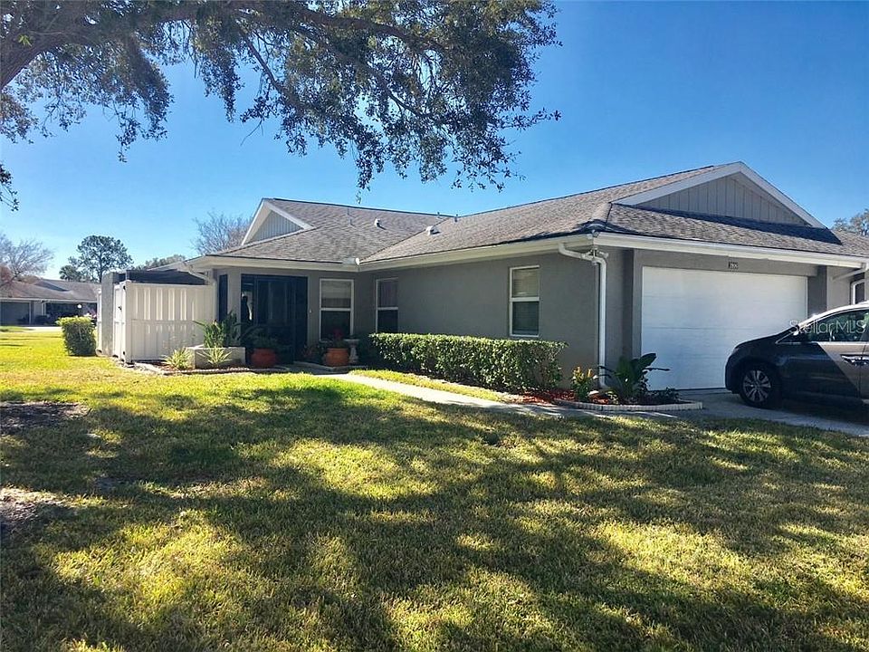 Explore the possibilities in this maintenance free, updated 2 bedroom, 2 bath Villa in highly desirable Center Gate Village. This lovely floor plan has all ceramic tiled floors. Both bathrooms have been updated. The gorgeous kitchen has new solid wood shaker style cupboards, quartz counters and lovely, new stainless steel appliances with induction cooktop. Mostly all windows have been upgraded with hurricane windows. Property has been all repiped, as well. There is also a totally glassed florida room with beautiful lawns and grounds and a peek of the community pool. The master suite is large and has plenty of closets with great shelving. There is also an oversized 2 car garage with lots of storage and built in shelving. It is close to great shopping and restaurants. You are close to all the amenities that Sarasota has to offer. Come check this one out. It is truly living the Florida lifestyle. This is not a 55+ community. Come check this one out.
