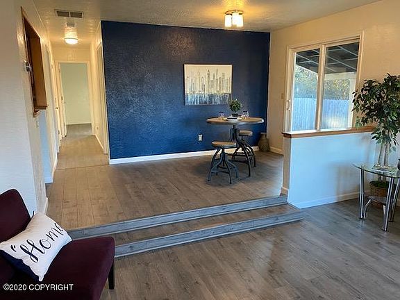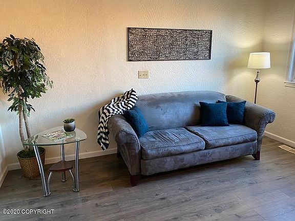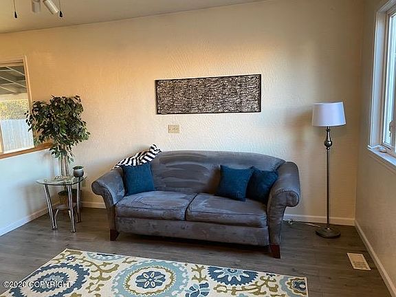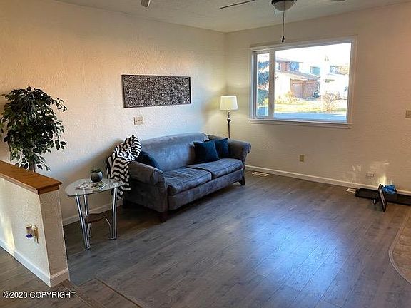 Wonderful updated ranch style ZLL n WestAnchorage. New laminate flooring throughout, corian counter tops, newer cabinets and new paddle fans/lighting throughoutmakes this one of the nicest in Anchorage.Close to the airport, shopping, parks & trails plus it backs to a greenbelt.. Perfect for the first time buyers or those downsizing, plus it comes with an HSA home warranty.