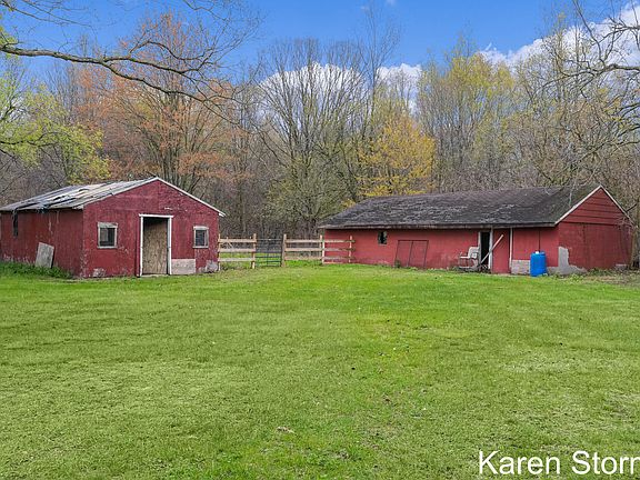 Hobby Farm with 11 Acres in Fruitport! Discover country living in this 5-bedroom, 2-bath home, ready for your personal touch. The home features an updated kitchen, a new deck, a new furnace and AC (2022), water heater (2025), and well pump (2025). Outside you'll find private views, wildlife, and space to garden or raise animals. The land includes two barns, and a rustic log cabin tucked away in the woods, perfect for a studio or quiet retreat. Bring your vision and transform this property into something special. It offers plenty of potential to make it your own and build instant equity. Sold As-Is. ALL OFFERS DUE SAT 5/10 AT NOON.