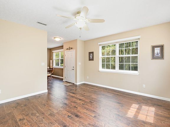Private rear patio areaAttached dual vanity bathLight-filled dining roomLaminate flooring