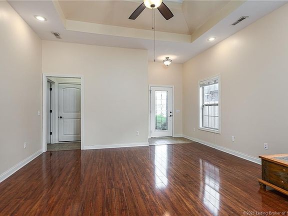 Check out this 3 bed 2 bath slab in an amazing location in New Albany! Sitting on a low traffic cul-da-sac, this home is close to everything! Inside you'll find a wide open floor plan that would be great for entertaining with a large living room with vaulted ceilings and laminate flooring. The nicely appointed eat in kitchen includes all the appliances and large island. The master suite features vaulted ceilings, a full bathroom with separate tub and shower and dual vanity. This one won't last so call for your private showing today! All sq footage is approximate and should be verified if critical.
