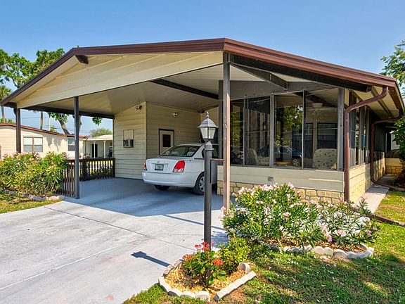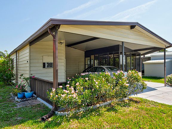 Welcome home to your lovely, well-manicured residence located in the highly sought-after 55+ gated community of Forest Lakes, where you OWN THE LAND! This charming property boasts numerous updates including a NEW ROOF, HOT WATER HEATER, and NEW PLUMBING. This bright and airy 2-bedroom, 2-bath home features wood laminate flooring throughout, providing a warm and inviting atmosphere. The eat-in kitchen has been thoughtfully re-imagined with new cabinetry, a dishwasher, and a stove, creating a delightful space for culinary creations. Adjacent to the kitchen is a cozy alcove, perfect for a home office or craft room. The spacious primary suite includes a walk-in closet and an en-suite bathroom equipped with both a bathtub and shower. Down the hall, the guest bathroom offers a convenient walk-in shower, and the large, comfortable guest room is situated right next door. Off the living room, step out to your screened lanai, which spans the length of the home and is surrounded by beautiful beautiful trees and bushes for added privacy. Enjoy multiple outdoor seating areas including a front seating space, a back area, and a deck where you can sip your morning coffee while gazing at the lake or unwind with evening cocktails. Additional features include an extra-wide carport and a shed with electricity, providing ample storage. The washer and dryer are included for your convenience, and the NEW 2020 AC ensures comfort year-round. This home is ideal for snowbirds seeking a perfect winter retreat or those desiring an affordable, year-round residence on the Space Coast. The community clubhouse, overlooking the lake, offers a plethora of activities including a heated pool, dock, full kitchen, fishing, shuffleboard, and various social events. The private streets are perfect for walking, biking, and golf cart rides. With easy access to I-95, the Beachline, Orlando Airports, Walt Disney World, and other attractions, this location is unbeatable. You'll be minutes away from great shopping, restaurants, Port Canaveral, SpaceX, the VA Clinic, Cocoa Village, and the beautiful beaches. The time is NOW to start living your Florida Lifestyle!