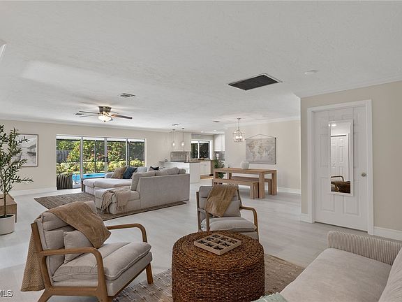 Welcome to this beautifully remodeled and fully furnished 4-bedroom, 2.5-bath pool home just steps from the Caloosahatchee River in one of Cape Coral's most desirable neighborhoods. Designed for comfort and style, this residence offers an effortless move-in experience completely turnkey with everything you need, from cookware and linens to tropical decor and poolside furniture.