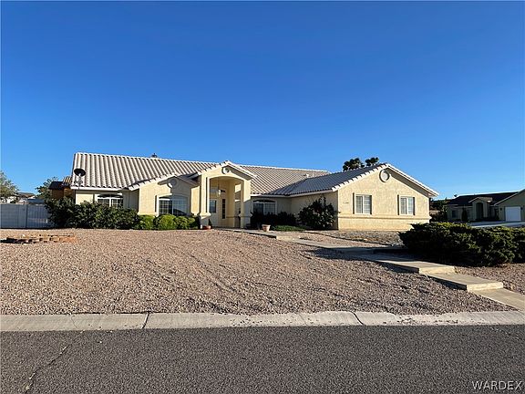 Beautiful corner home in a beautiful Hualapai Foothill neighborhood offers 4 bedrooms, 2 bathroom, 3 car garages. Open concept with, eat-in kitchen with tile countertop, plenty of cabinets, large countertop for barstool seating, formal dining room, an additional casual dining area open to the living room. Vaulted ceiling in living area with gas fireplace and skylights. Large size master bedroom with walk-in closet, dual sink in master bathroom, walk-in shower with separate bathtub. Large size laundry room with gas and electric hookup. Window coverings throughout the house. Fully landscaped front yard with gorgeous view at the sunset over the mountains and the city of Kingman. Large RV gate in the backyard. An extended covered patio. Great place to call home.