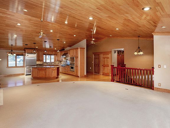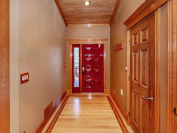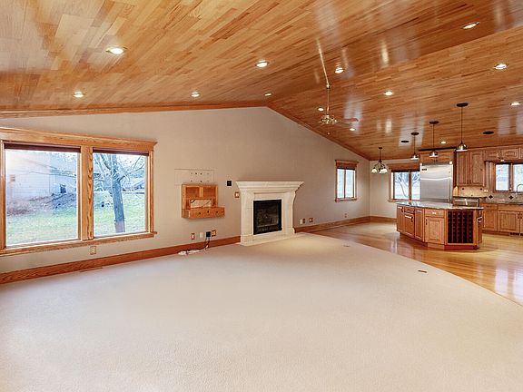 Throughout the home, every detail speaks of quality and craftsmanship. Andersen windows flood the space with natural light, highlighting the beauty of custom oak cabinets and doors. Entertaining is effortless in the open floor plan with vaulted ceilings, where a gas fireplace invites cozy gatherings. Revel in the comfort of 100% wool carpeting, set against the rich backdrop of 1/4 sawn solid red oak flooring with intricate inlay designs.