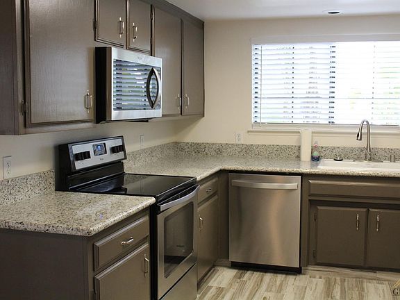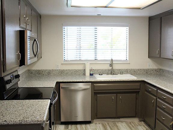 If you want a beautiful, updated, move-in ready home, then look no further! This Laurelglen charmer has many upgraded features such as new granite kitchen counters, new stainless appliances, updated cabinets, plus all new kitchen drawers. Gorgeous, on trend wood-look tile floors and all new baseboards installed thru-out including new carpet & new ceiling fans in all three bedrooms. Hall bath also features the beautiful wood-tile floors, new light fixtures, mirror and new cabinet drawers. Master bedroom has walk-in closet and french door leading out to the private backyard where you have a covered patio with new patio roof, plus additional room for RV parking. Beautiful curb appeal out front with lush landscaping and gorgeous stone accent on exterior of home. Call today - Don't wait!
