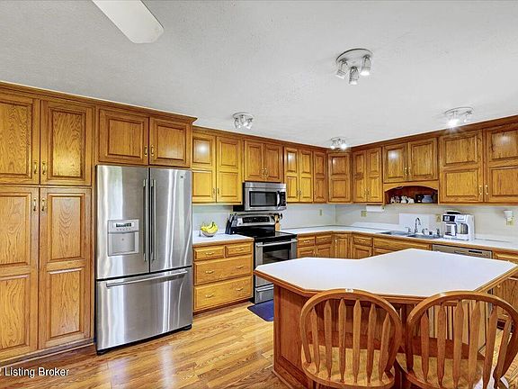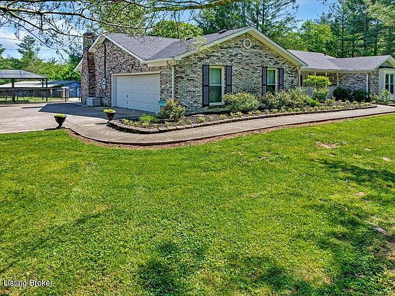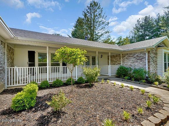 Escape into nature on over 5 acres of tree-studded pastures conveniently located in Crestwood. Nestled on this slice of heaven is a 3 bedroom 2 full bathroom brick ranch with over 2,300 square feet. Upon entering the home the foyer opens into the large eat-in kitchen with floor to ceiling custom cabinetry, island, and stainless steel appliances. Off the kitchen sits a dining room to the right, living room with wood burning fireplace to the left, and the expansive Florida room complete with heat and air for year round use. Down the main hallway are the 3 spacious bedrooms and an updated primary bathroom with all new double vanity, flooring, and a tiled shower/bath combo. Storage won't be an issue at all with over 1,900 unfinished square feet of basement space and the side-entry oversized 2.5 car garage. The magic continues out back with an acre of fenced yard complete with a 2 stall barn. The fencing opens to the gently sloped pastures with over 100 mature pine trees for shade and tranquility and a year round creek that borders three sides of the property. Truly a gem of a property in Oldham County, don't let this one pass you by! Schedule your appointment today.