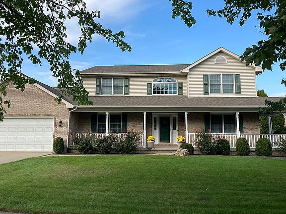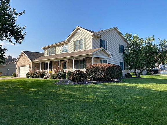 Spacious two-story home located in Mill Creek Estates subdivision on Springfield’s west side. The home boasts a large corner lot on a quiet hairpin street. Four bedrooms with 2.5 bathrooms. Open concept kitchen and family room is great for entertaining. Newer kitchen appliances added in 2019. Beautiful maple hardwood floors throughout main level added in 2019. Formal living room and formal dining room with built-in server. Main floor laundry and in-home office with built-in desk. Four bedrooms upstairs including master suite with walk-in closet and en suite bathroom with jetted tub. Home security system, whole house vacuum, and Heat & Glow gas fireplace insert are just a few of the great features this house offers. Full unfinished basement is plumbed for a full bathroom. Updated landscaping (2017), air conditioner (2016), furnace (2015), hot water heater (2015), roof replaced (2014). Kitchen appliances, washer, and dryer stay.