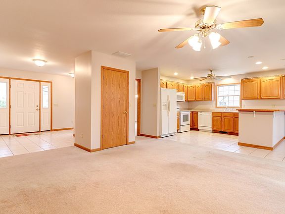 Nice curb appeal greets you and when you open the door you'll appreciate the spacious and open feel from the first step. Kitchen with pantry and eating bar open to breakfast nook and family room. Gas log in family room. Large master with nice sized closet and bath with double sinks, walk-in shower. The large deck is perfect for entertaining or having morning coffee and overlooks the fenced yard, raspberry bushes and flowers. Storage is abundant throughout the home and continues in the 3 car garage. Interior just painted and pre-inspected.