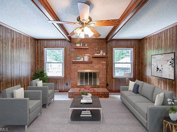 This adorable 1,535 sq ft one story has so much to offer! Conveniently located on a dead end street, near Hwy 421, S Holden Rd, eatery, and shopping! This home features 3 bedrooms, 2 full bathrooms, den, separate living room, and separate dining room. Home boasts NEW carpet and gorgeous beams and fireplace in the living room. Large front and back decks for entertaining and 2 storage sheds in the backyard. Water heater from 2021! Easy maintenance with vinyl siding and you’ll love not having an HOA and updated vinyl windows!