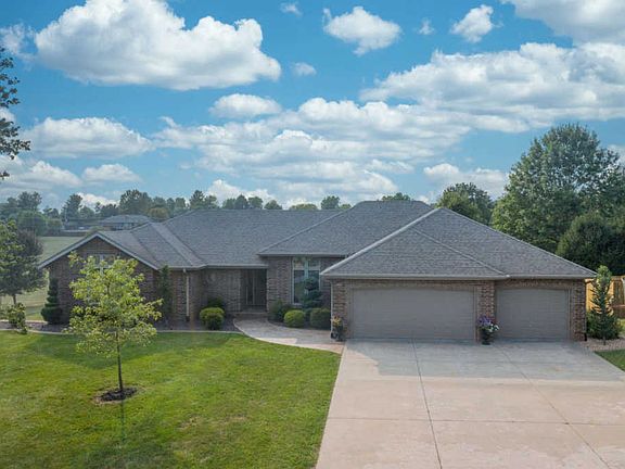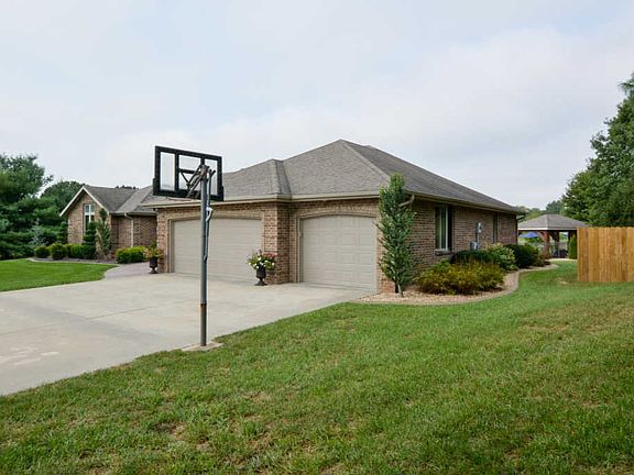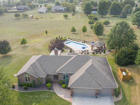 Striking all brick walkout basement with excellent in-ground pool & exterior living areas on 4+ acres in North Ozark! Amazing! The exterior is sharp...offering space to roam with an extra lot, wide driveway, concrete landscape edge to reduce trimming, custom open & covered deck with hidden screws, 2 covered pergolas with power & shades, lazy L shaped in-ground pool with 2019 liner (approx. 8 feet deep), and front & back landscaping that offer mature trees & privacy. Inside shows incredibly well...hosting a very open floorplan, an open formal dining room, split floorplan with 4 carpeted bedrooms on the main level with walk-in closets, gas fireplace w/ glazed mantel in living room, solid wood doors, tunnel skylight, a dedicated laundry/powder room with composite sink & quartz, and hickory wood floors. The kitchen is loaded with detail...huge open granite island, flush mount glazed cabinetry, coffee bar, pantry, convention wall oven, Advantium microwave, electric gas cooktop with tile backsplash, composition sink, and is absolutely a central point of the home. The master is private....offering a generous sitting area, 2 walk-in closets, granite & double vanity, very nice walk-in glass shower, built in custom cabinets that really adds a nice feature, and long tile that brings a completion to the master bathroom. The finished basement offers an amazing craft room (5th bedroom) with natural light & size, 2 living areas, game room/media room, wood burning fireplace, and full bath with barn wood tile floors. The home and property show extremely well. It's a must see with a prime location!