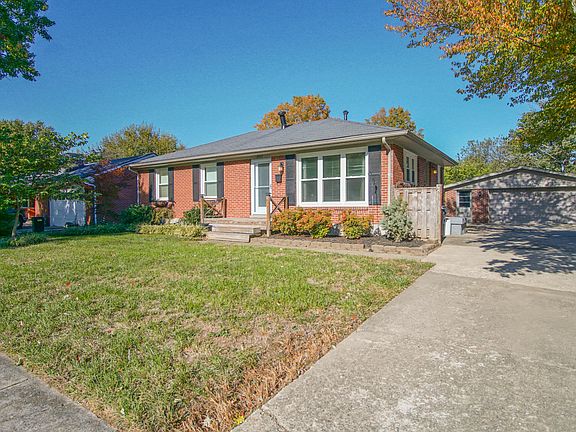 Charming ranch in Brookhaven is conveniently located near Browns Ln and Taylorsville Rd with easy access to Watterson Expressway, shopping centers, restaurants, & schools. The home features a traditional layout with living room, dining area and kitchen. Off the kitchen is a large family room with vaulted ceilings and wood beams, lots of windows allowing for tons of natural light, built in bookcase, wood burning stove and french doors that lead to both driveway and back patio. The spacious master bedroom with his and hers closets, a second bedroom and full bath complete the main floor. The partially finished basement features two large rooms perfect for home office, playroom or additional family room and a second full bath. The outside patio overlooks yard and is perfect entertaining space