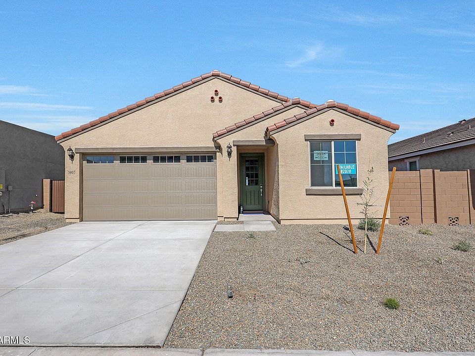 Discover the charm and functionality of the Copper floorplan by Mattamy Homes! Move-in Ready now single-story home features the elegant Spanish exterior with front landscaping a versatile flex room, and a thoughtfully upgraded Gourmet-style kitchen. The kitchen boasts sleek stainless steel appliances, stylish white-toned cabinetry, and stunning quartz countertops—perfect for both daily living and entertaining. Tile flooring flows seamlessly throughout the main living areas, adding warmth and durability. Nestled in a scenic community surrounded by breathtaking mountain views, this home combines modern comfort with natural beauty. Includes a comprehensive builder home warranty for added peace of mind.