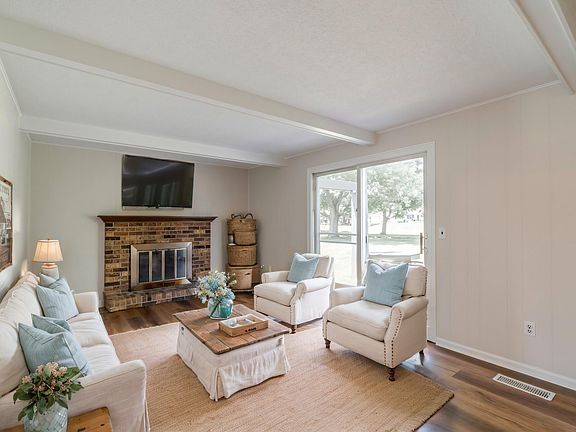 Multiple living areas including a spacious living room, Cozy brick fireplace in the family room, 3 bedrooms and 2.5 bathrooms, Versatile room that can serve as an office or formal dining area conveniently located off the foyer. Primary bedroom features an attached full bathroom. Large cul-de-sac lot with a view of the common area, within walking distance to the park, walking paths, and tennis courts. Newer roof, Freshy painted, new carpet, huge patio & deck for out door entertaining make this a wonderful deal! Note - Some photos are AI Staged