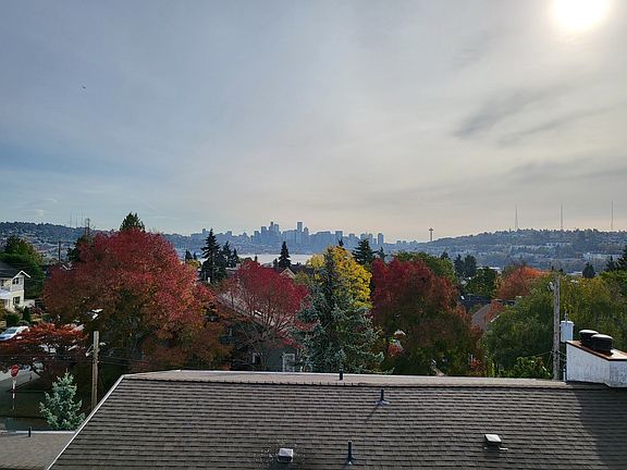Fantastic views of Seattle, Mount Rainier and the Olympics with amazing sunsets! Top floor/entire floor apartment with dedicated balcony (not a shared rooftop). New paint, new carpet, new kitchen, new bathroom. Close to UW, Fremont, Ballard. Bus stop close by. This apartment is part of a quiet 4-plex with great long term residents. Easy street parking. Off street parking may be available at additional cost. No elevator. Rent includes water/sewer/garbage for 2 tenants. Additional contribution to utilities if more than 2 residents. Electrical, phone, internet are not included. First full month + deposit at least signing.