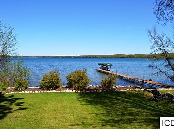 Enjoy the wooded drive and dead end privacy of this completely updated 4 bedroom, 2 bath lake home on the clear blue waters of Sugar (Sissebakwet) Lake. This year-round home features an open floor plan in the kitchen, dining, and living room area all with east facing windows and panoramic views of the lake. Sliding glass doors to the deck and a two sided fireplace in the master bedroom. The walk out basement to a beautifully landscaped lawn and concrete patio guide you down to the sandy shore and gorgeous water Sugar Lake is famous for. Attached garage, tar driveway, 2 stall bonus garage that is heated and insulated plus a storage shed gives you plenty of room for your toys.