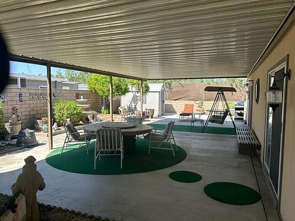 Home has a large outside patio for entertaining. The property is elevated above the street level. With your creativity you can turn this home into a beautiful custom home for yourself and family. The community is a 55 plus year old. The HOA monthly fee is $400 which includes your cable, internet, trash pickup, 24 hr security, 3 pools, golf is included and so many other activities to enjoy!