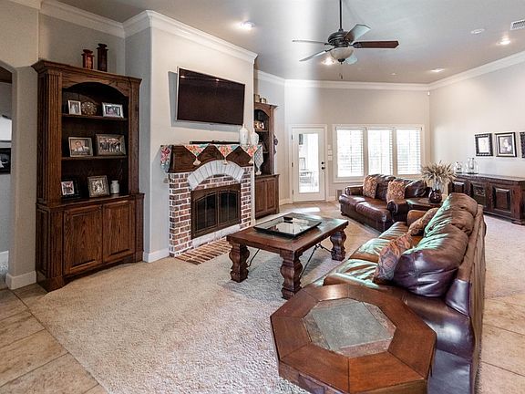 Over the top gorgeous! Immaculate 4 bedroom, 3 full bath home with open floor plan. Isolated master suite has special ceilings, air flow tub, seated shower, double lavatories and awesome walk-in closet! The second isolated bedroom could be an office or workout room. Spacious family room with beautiful brick and stone fireplace. Gourmet kitchen features granite & stone counters, island/cooktop, stainless appliances, double ovens & breakfast bar. Patio and outdoor fireplace are perfect for relaxing & entertaining. Lots of recessed lighting, crown molding, plantation shutters, special ceilings, arched doorways, inviting curb appeal, & oversized 2 car garage make this home extra special. It's a must see!