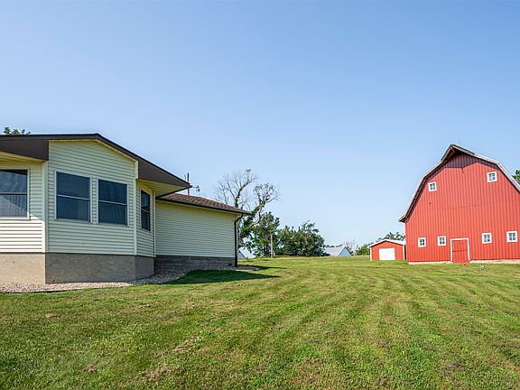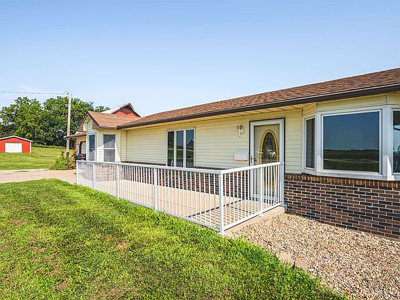 This stunning acreage spans just over 4 acres and features a charming ranch home, beautiful barn and a shed. Lush pine trees and a classic white picket fence surround the property. Walking through the front door you’ll enter the living room filled with natural light from the bay window with a convenient coat closet located by the door. Nice space for a dining room table off the living room. The kitchen features another expansive bay window making the perfect spot for a small table and eat in kitchen space. You’ll find three bedrooms on the main floor including the primary bedroom. The full bathroom includes a walk-in shower and a walk-in tub. This entire home is handicap accessible with custom wide doorways and zero entry from garage and front door. Main floor laundry room with entry from the back hallway and from the primary bedroom. Includes a built-in ironing board, two closets and the ½ bathroom. Off the back of the house is a spectacular 3 season porch with panoramic views of the Iowa countryside perfect for drinking your coffee and watching the sun rise! Sellers are selling property As-Is.