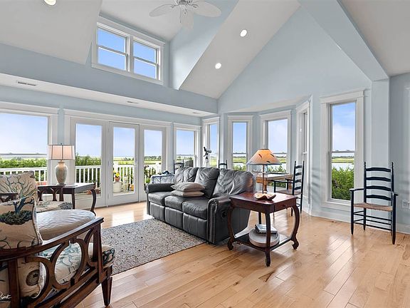 A RARE and ONE OF A KIND FIND ON 7 MILE ISLAND! This custom home is built on an oversized 7,200 sq foot lot in an extraordinarily private setting! Enjoy expansive bay & wetland views spanning 180 degrees beginning with early morning sunrises on your deck to mesmerizing sunsets and afterglows each night! IMAGINE THIS with your only visible neighbors being a pair of nesting ospreys raising their young! This contemporary home was built in 2011, and features an upside-down style floor plan with wide open Living/Dining areas and a soaring cathedral ceiling! The Kitchen features stainless steel appliances, a hand-crafted Tiffany-style Lamp, and Boos Butcher Block Island. The 1st Floor features a front to back hallway leading to a private, landscaped rear yard with mature trees. The spacious Family Room is enhanced with an antique oak mantle, gas fireplace and access to the covered deck. There are also 2 Bedrooms, one Bathroom, and a Laundry Room with side yard and garage access. Ascend the stairs and you're greeted by panoramic views! The 2nd Floor features 2 bedrooms (including the Bayside Master Bedroom), 2 bathrooms, the Living/Dining Area and the Kitchen. Flooring throughout is hickory (hardwood) and porcelain tile. Besides the secluded setting, additional highlights include: 3 blocks to the beach path and one of Avalon's widest beaches; short walk or bike ride to town; ample off-street parking, plenty of room for a pool to enhance the rear yard oasis, a retractable awning above the bayside deck, an on-demand gas hot water heater, landscaping sprinkler system, "elevator ready" (shaft already installed), and a concrete slab underneath the home for additional storage. The home has been owner-occupied (not a rental property) and is being sold furnished (less some exclusions) & ready for your immediate enjoyment. FYI: The first floor of the home sits at about 12 feet above sea level, and therefore flood insurance is $400-$700/year! Advance appointment appreciated prior to showing.
