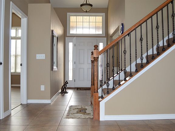 Immaculate well maintained open concept home with main level primary bedroom suite located in a great neighborhood with a nearby park. Attractive curb side appeal with a covered entry porch that leads to a 2-story foyer and family room with fireplace. The spacious adjoining kitchen includes custom hickory cabinetry with granite countertops, breakfast dining area, island for additional seating & workspace, and stainless steel appliances which remain. Hardwood flooring in the formal dining room with crown, chair, & panel molding. Tiled flooring in the entry, kitchen, baths, & main level laundry. Washer/dryer remains. Newer engineered wood flooring in the family room and primary bedroom suite which also includes a double sink vanity, jetted tub, and walk-in closet. Overlooking the family room, the loft provides for office/hobby/library/flex space for your individual desires. Two additional large bedrooms and full bath are located in the upper level. The full basement with daylight and egress windows, 9 ft ceiling, and rough-in for a full bath is ready for your personal touch and specific needs. Beautiful backyard with trek decking, patio, mature landscaping & trees, and fully fenced backyard. Three car garage.